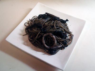 うすひらたけとイカのイカスミパスタ イカスミに決して負けていない風味の、「うすひらたけ」。 よく冷やした白ワインとチ-ズをお供に、夏の夕食にぴったり。 材料 うすひらたけ 1パック なまいか 2はい(胴のみ) インスタントイカスミ 2人前(レトルト食品) パスタ300g 調味料 ニンニク1かけ(砕いておく) オリ-ブ油 大さじ2 作り方 1、 パスタをゆで始める。 2、 「うすひらたけ」・ベ-コンは1口大に切る。 2、 ソ-スを作る。温めたフライパンにオリ-ブ油でニンニクを炒め、ベ-コンで味を出し、きのこを炒めて、 塩胡椒で味を付ける。好みで、赤唐辛子のみじん切りをいれる。 2、 ゆであがったパスタに、ソ-スを絡めて、皿に盛る。 きのこ料理のレシピ目次へ戻る
